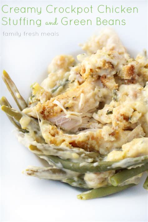 Creamy Crockpot Chicken Stuffing and Green Beans - Family